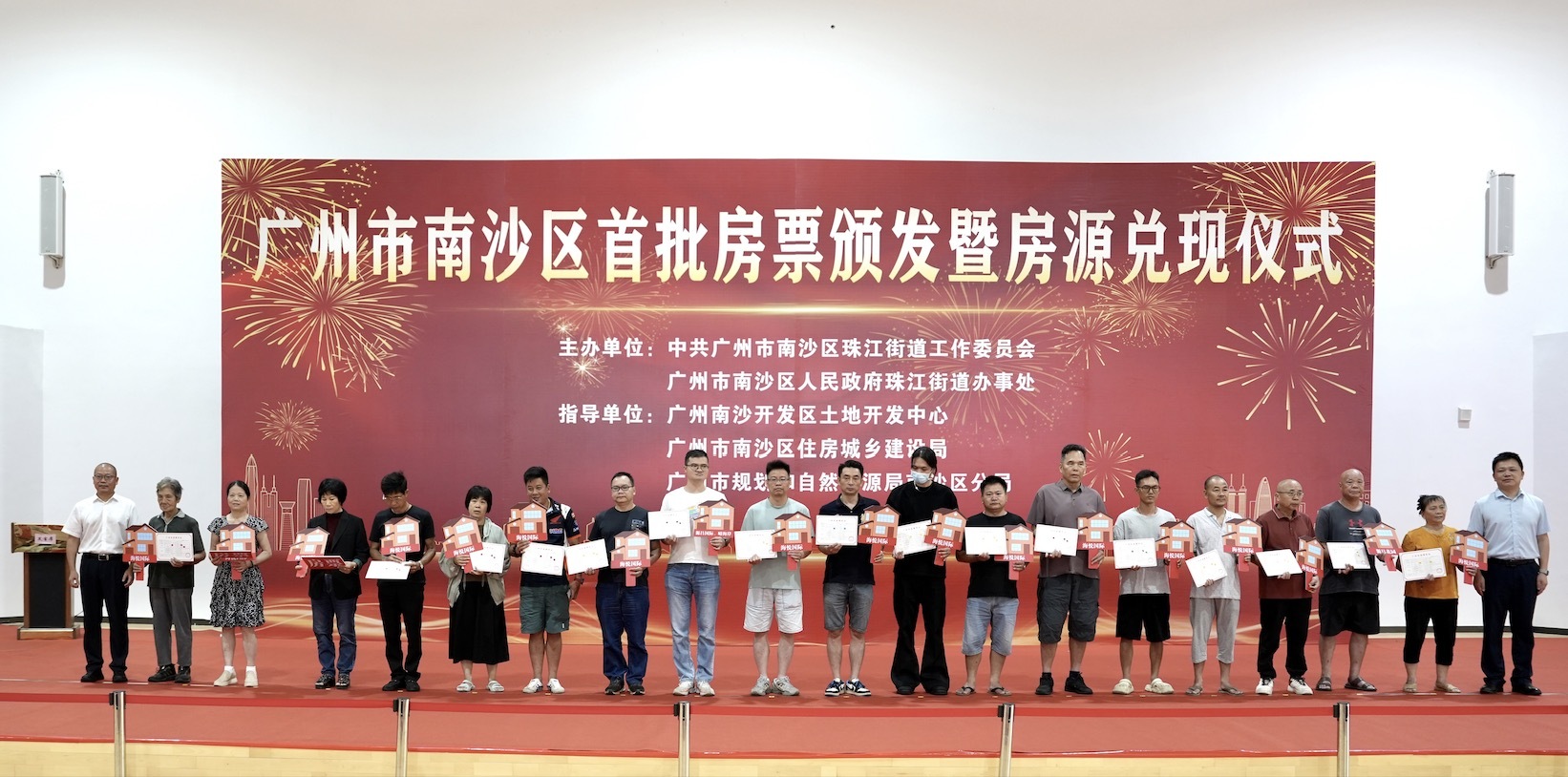 6月16日,广州市南沙区在珠江街道全民健身活动中心三楼举办南沙区首批房票颁发暨房源兑现仪式,现场向首批符合条件的群众颁发南沙区“房票凭证”,这标志着南沙区、珠江街道在探索城市发展、优化拆迁安置模式上迈出关键的一步。