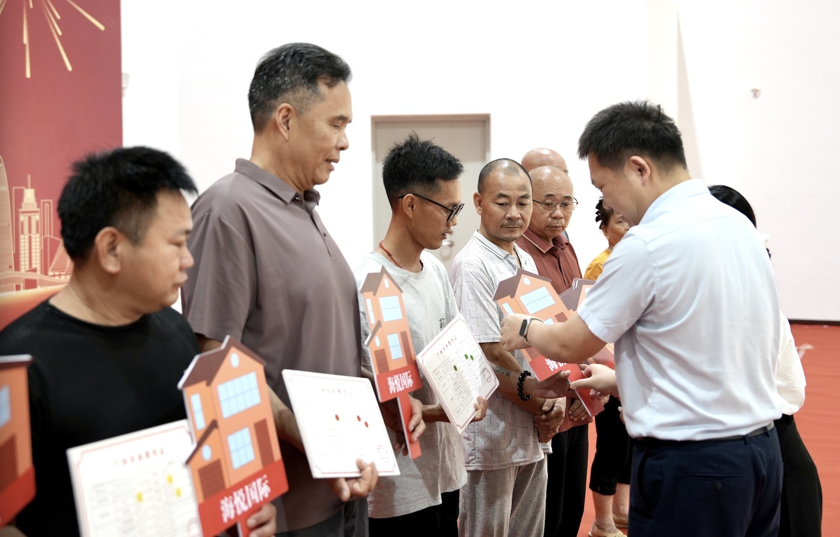 活动现场,珠江街道、区土地开发中心有关负责人逐一为首批18名房票使用人颁发房票凭证,房票总额超5000万元。